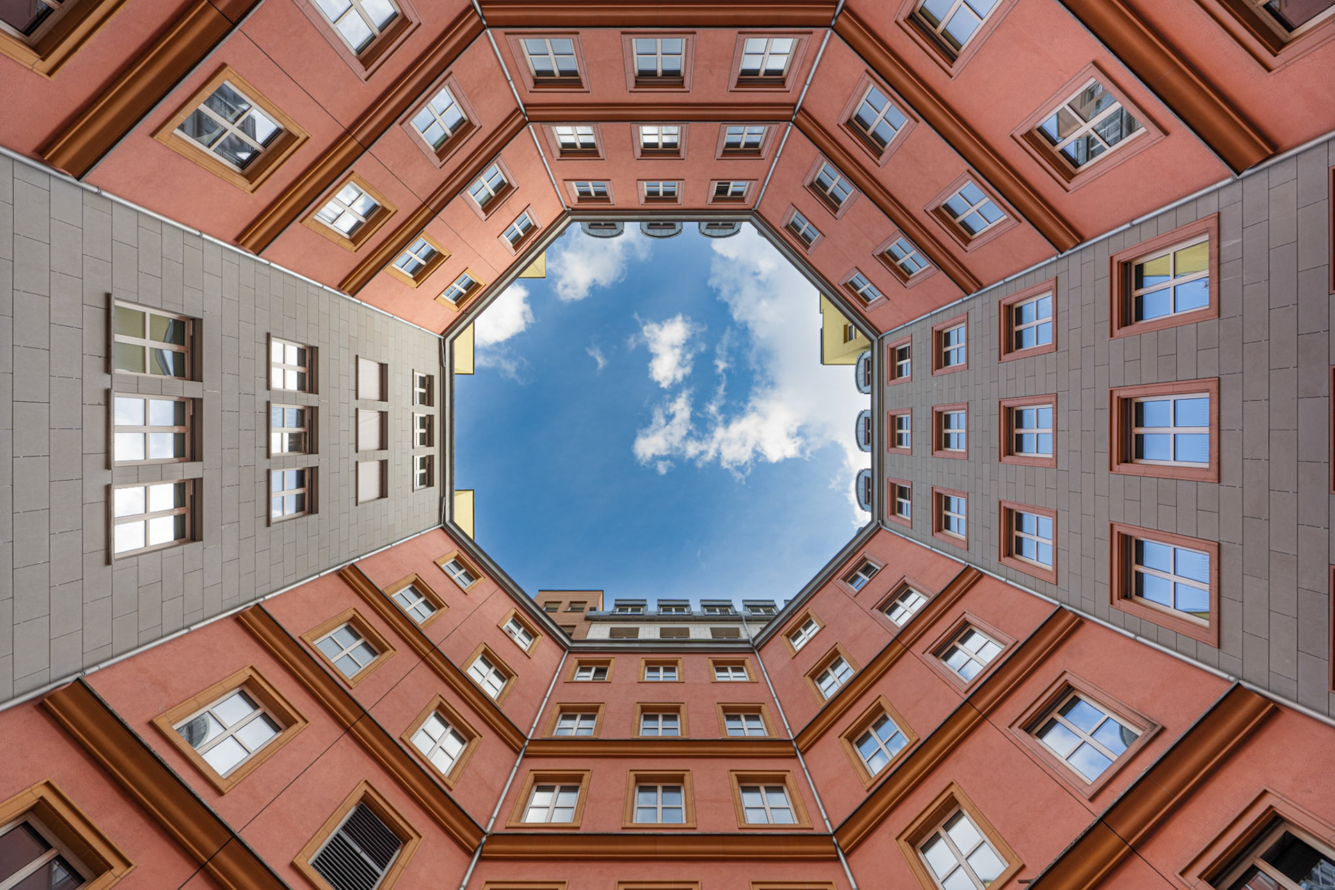 The Beisheim Center’s facade in sandstone is inspired by one of the world’s first high-rise office buildings: Chicago’s First Leiter building designed by William Le Baron Jenney in 1879.