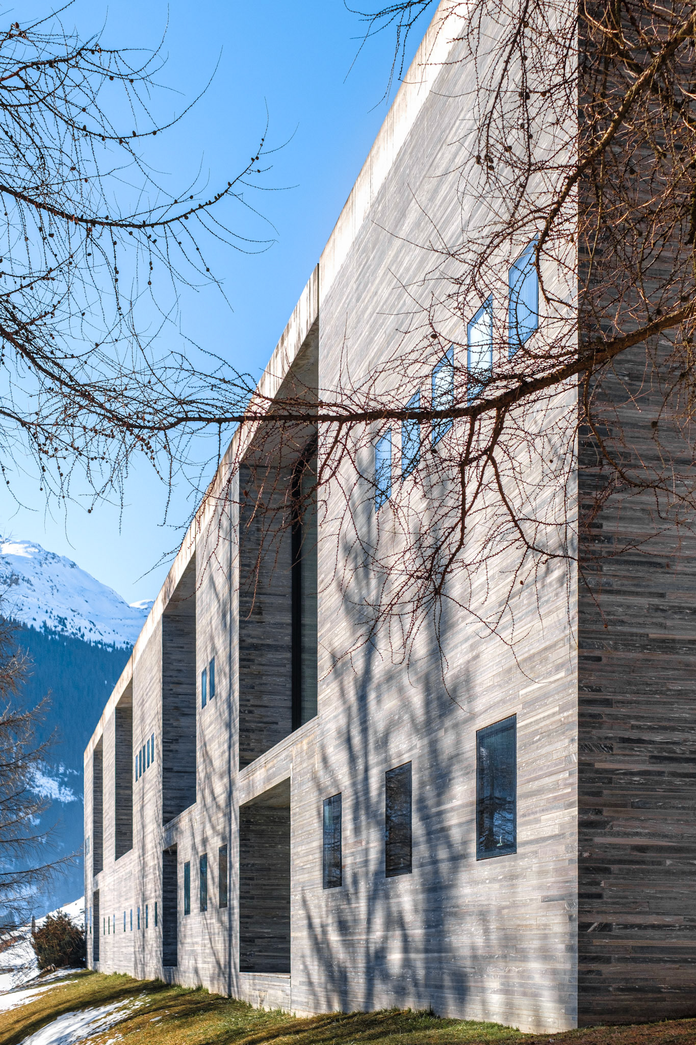 Designed by Valerio Olgiati and completed in 2007, Atelier Bardill replaces an old barn which exterior dimensions it had to follow exactly in order to obtain the building permit.