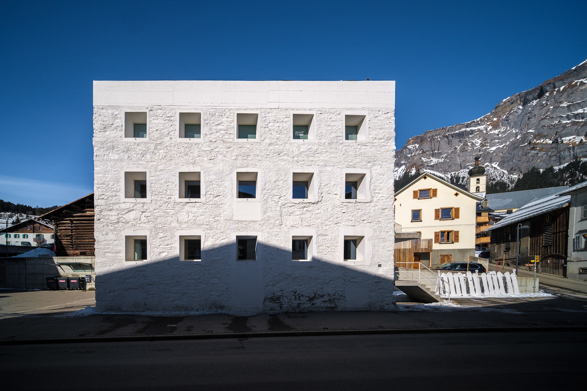 A short walk from there is the Das Gelbe Haus Flims (Yellow House) and its history is related to both Rudolf and Valerio Olgiati. Shortly before his death in 1995, Rudolf Olgiati donated part of his cultural goods collection to the municipality of Flims under the condition that the yellow house in the middle of the village be renovated to his taste. In particular, it was supposed to be painted "from top to bottom in white."